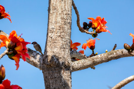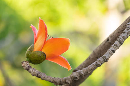 Beautiful Palash flower blooming with vivid red color during springtime.