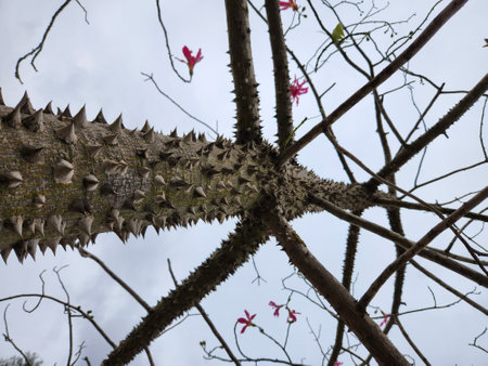 Tropical tree trunk with sharp thorns
