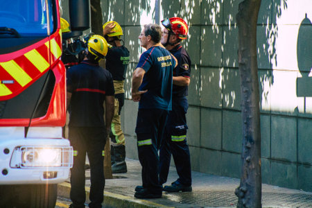 Seville Spain July 23, 2021 Fire engine in the streets of Seville, an emblematic city and the capital of the region of Andalusia