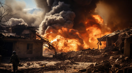 Houses in the village were destroyed or burned during the war AI Generation