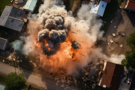 aerial view of explosion in urban area