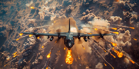 Bombing Insurgents from Warplane During Conflict. Concept Military Strategy, Aerial Warfare, Combat Tactics, Insurgent Bombing, Conflict Resolution