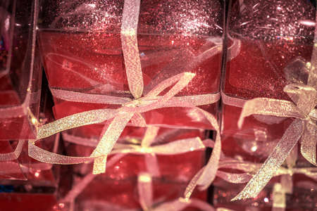 blur background of Gift box and ribbon bow for celebration festival event new year party