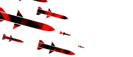 The scene of countless missiles falling, digital illustration.