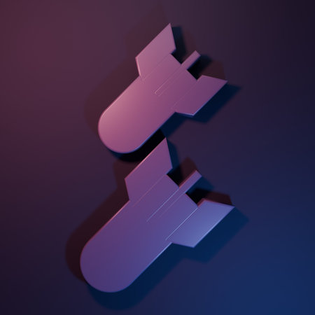 3D rendering, Realistic close up the dynamite bomb with digital countdown in 5 second, shadow darkness neon purple and blue colors background.