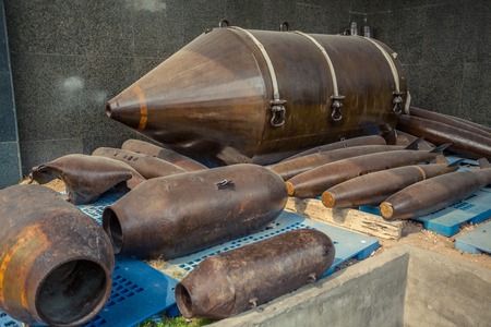 Ho Chi Minh City, Vietnam - JANUARY 25, 2015: A view shows the Bombs On Display War Remnants Museum Exhibitions Military Collection Vietnam War.