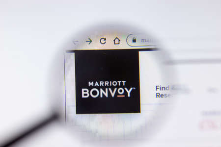 Saint-Petersburg, Russia - 18 February 2020: Marriott company website page logo on laptop display. Screen with icon, Illustrative Editorial.