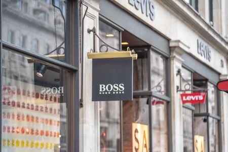 salzburg, salzburger land/austria - 09 10 19: hugo boss sign in salzburg austria