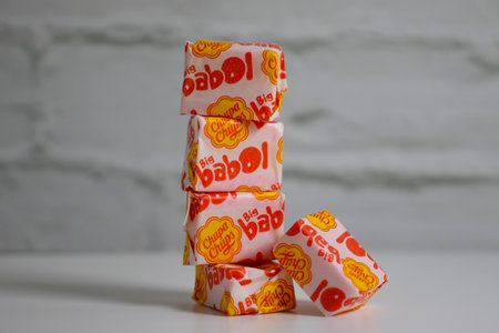 April 20, 2023 Ukraine city Kyiv chewing gum Chupa chups babol on a light background