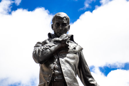 BOGOTA, COLOMBIA - JULY 2023. Monument to the famous Colombian scientist Francisco Jose de Caldas, also known as El Sabio Caldas in the city center of Bogota