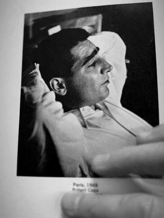 Portrait in a book by photographer Robert Capa. Black and white photos.