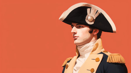 a digital illustration by navy john trumbull featuring a detailed character design of a man wearing an old hat. the vibrant orange background adds a striking contrast to the subject. this digitally enhanced artwork showcases the artist's talent in creating celebrity portraits. ai generated