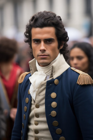 Epic depiction of an iconic soldier in the american revolution amidst a war torn battlefield scene