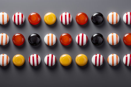 Candy Stripe Delight: Rows of Striped Candies on a Gray Background