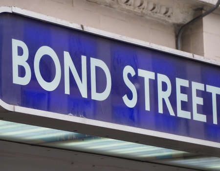 LONDON, UK - CIRCA SEPTEMBER 2019: Bond Street tube station sign
