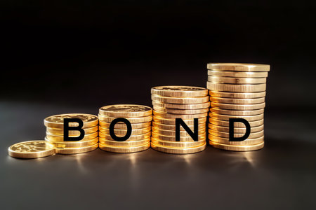A close-up view of wooden blocks spelling BOND set against a background of financial graphs, highlighting themes of investment and market trends.
