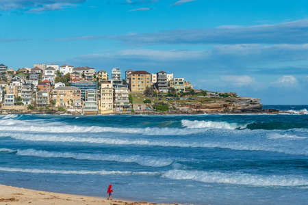 Beautiful Bondi Beach with colorful houses on the Pacific Ocean coastline of Sydney, Australia. The iconic beach is one of the most visited tourist sites in Australia.
