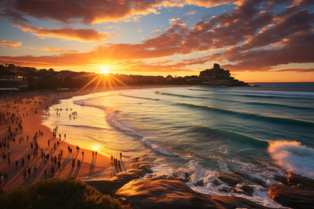 Bondi Beach, Sydney Surfers, Sol Pente, Life on the Beach., generative AI