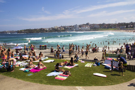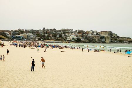 People relaxing on the Bondi beach in Sydney, Australia. Bondi beach is one of the most famous beach in the world.