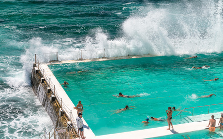 SYDNEY - OCTOBER 2015: Sydney Bondi Beach pools. Sydney attracts 30 million people annually.