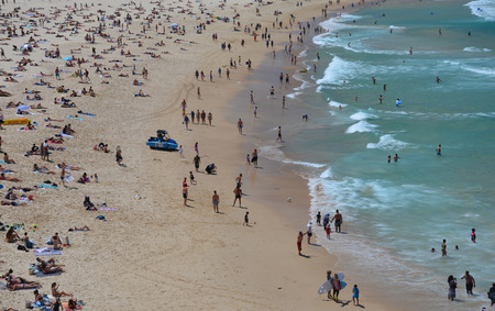 People including tourists were going out for swimming and surfing in holidays at the Bondi Beach of Sydney, Australia