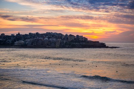 Beautiful moment of sunrise at famous Bondi beach,where is people come to surfing. Photographed on 2 April 2016.