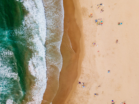 Aerial view of a beautiful sandy beach with turquoise ocean waves