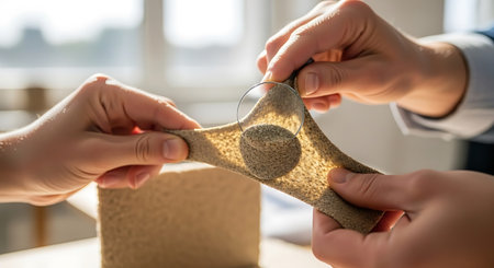 Hand holding an adhesive bandage for minor cuts, in the background micropore cloth for first aid.