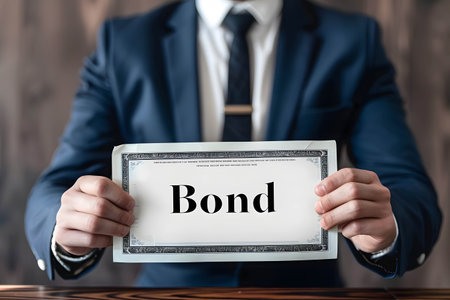 Businessman behind hold bond certificate with word “Bondâ€, investing in bonds concept