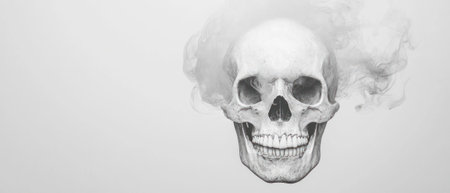 A haunting skull surrounded by ethereal smoke, representing life and death concepts.