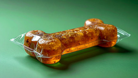 A premium, bone-shaped dog chew, freshly sealed in clear packaging to preserve its natural goodness. Set against a vibrant green background, this gourmet treat awaits a happy pet, promising a delicious and satisfying reward.