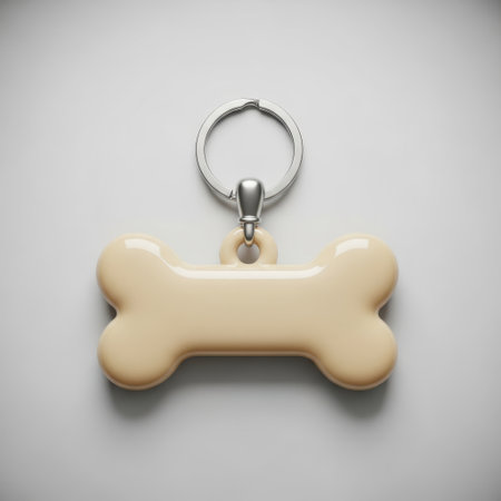 Customizable bone shaped pet tag mockup on white surface, ideal for pet shops. Simple 3d design template for dog or cat identification. Perfect for vet clinics