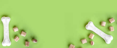 Treats for dogs on a light green background.