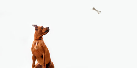 Portrait of a dog looking longingly at a delicious bone. Isolated white. Generative AI
