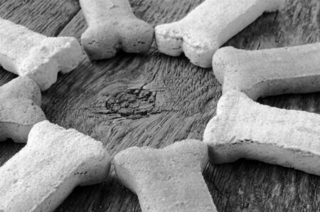 Chewing bones on black wooden background