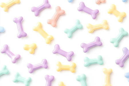 Colorful dog bones on white background. Top view. Flat lay.