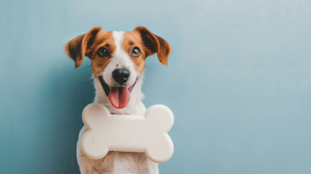 A close-up illustration depicts a white bone against a light blue backdrop. The object is rendered with smooth gradients, suggesting a clean and modern design. The composition is straightforward, suitable for various applications, including advertising and educational content. The image provides copy space for text.