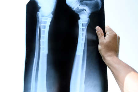X-ray, a picture of the leg bones after surgery in the hands of a doctor