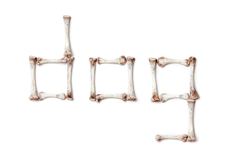 dog joy. word joy is made up of purified chicken bones closeup. Capital letters