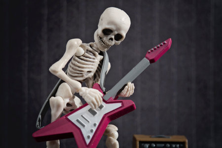 A Skeleton playing rock electric guitar