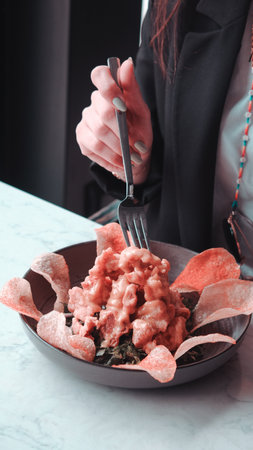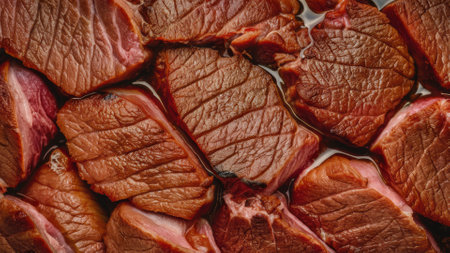 A close up of a pile of meat sitting on top of each other, AI