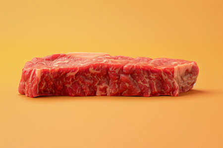 Raw beef steak on a light brown background. Ideal for carnivore and keto diets