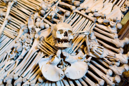 Human skulls and bones in Sedlec Ossuary, Kutna Hora, Czech Republic