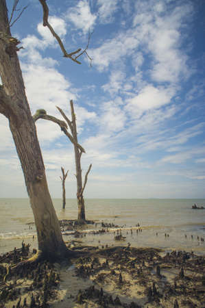 Dead trees on Klanang Beach Selangor, Malaysia
