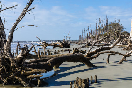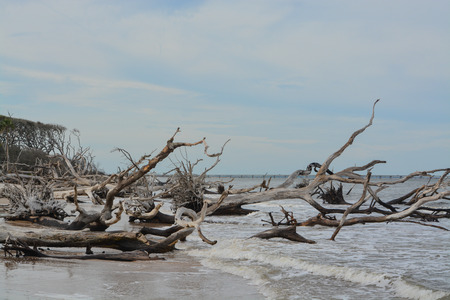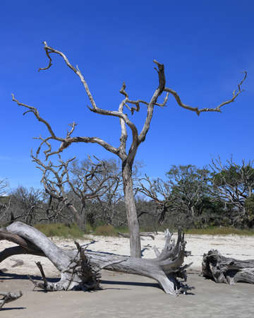 Driftwood and weathered trees on Jekyll Island Georgia coast