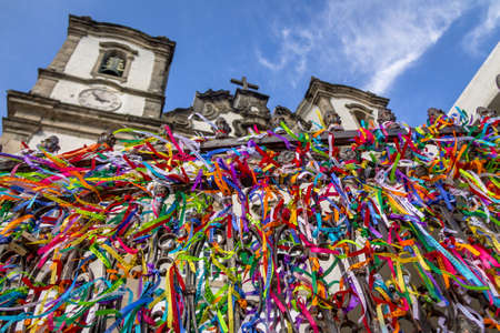 Igreja de Nosso Senhor do Bonfim, a catholic church located in Salvador, Bahia in Brazil. Famous touristic place where people make wishes while tie the colorfull ribbons in front of the church.