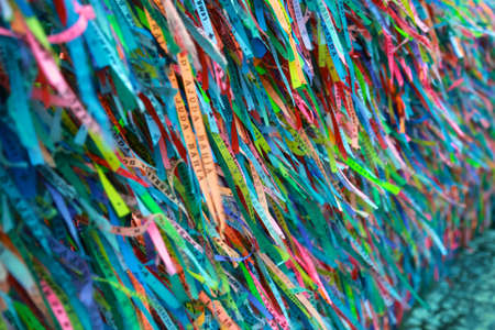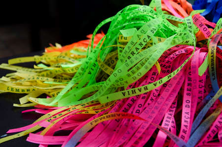 Salvador, Bahia, Brazil - January 09, 2016: Senhor do Bonfim tapes. Famous ribbons that are sold in the church for the faithful to tie to the church fence.