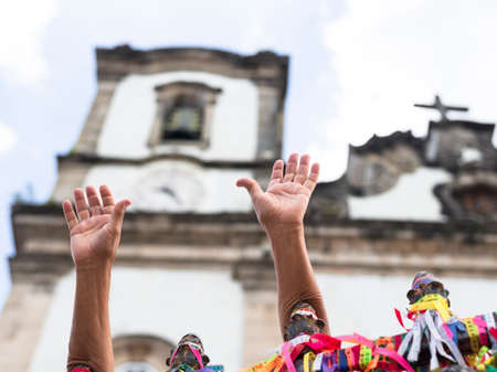 Salvador, Bahia, Brazil - January 04, 2019: Faithful go to Senhor do Bonfim Church, in Salvador, Bahia, on the last Friday of the year to ask for peace and health next year.