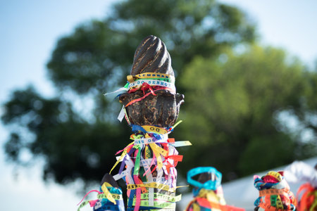 Oliveira, Minas Gerais, Brazil - August 8, 2018: congado - detail of the captain of guard of the rosary festival