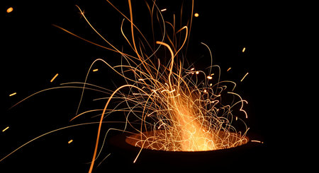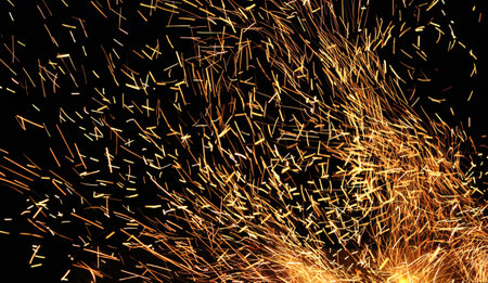 A stunning display of fiery sparks created during metalwork, showcasing shimmering lights against a dark background for visual impact.